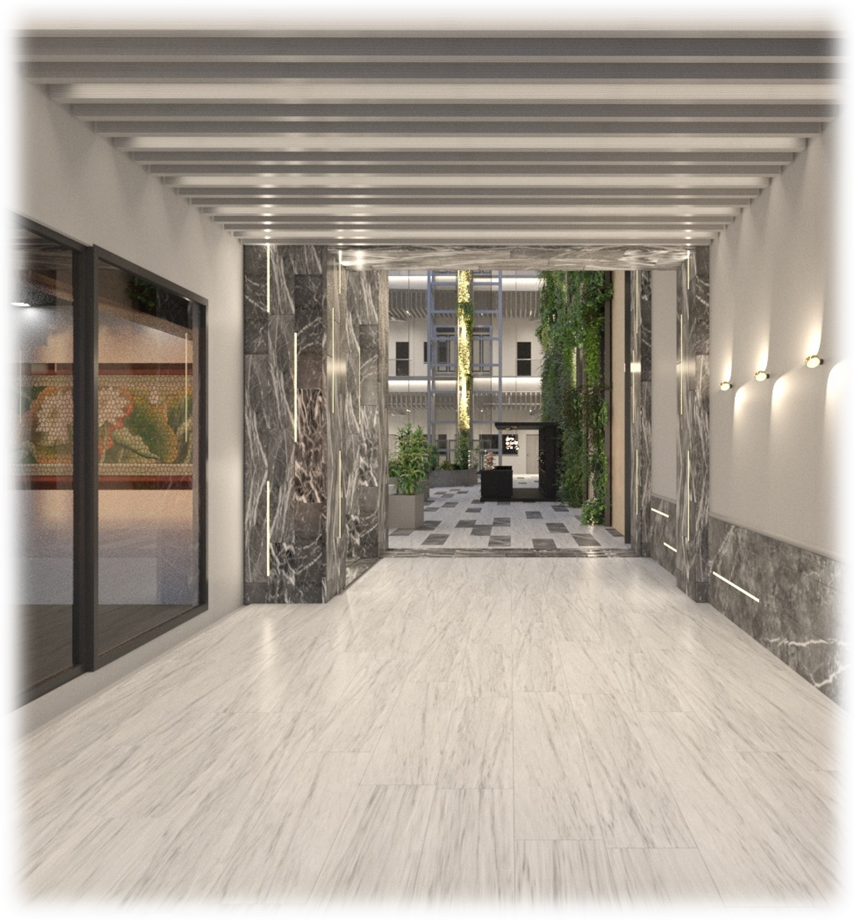 La entrada principal de Pabellón Dorado otorga una imagen moderna y atractiva, lo que favorece la percepción del visitante y contribuye a la visibilidad de tu negocio desde el acceso principal, logrando así un mayor flujo de clientes potenciales.